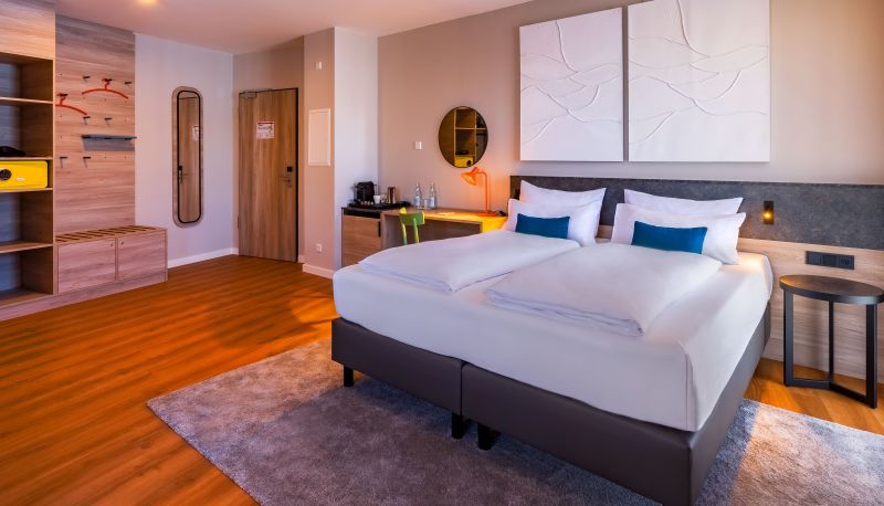 The Ramada Encore by Wyndham Munich is a new design concept hotel. It combines hotel / hostel / long-term accommodation under one roof. The service of a hotel, the youth of a hostel, and the extras (washing area with dryer) of a long-term accommodation. We offer this to our guests at moderate prices. ---------- due to the current situation (Covid19) sadly, we can not offer you our classic breakfast buffet. Instead we can prepare for you a alternative, tasty lunchbox. We are looking forward to your stay and wish you a pleasant journey. Your Ramada Encore by Wyndham Munich